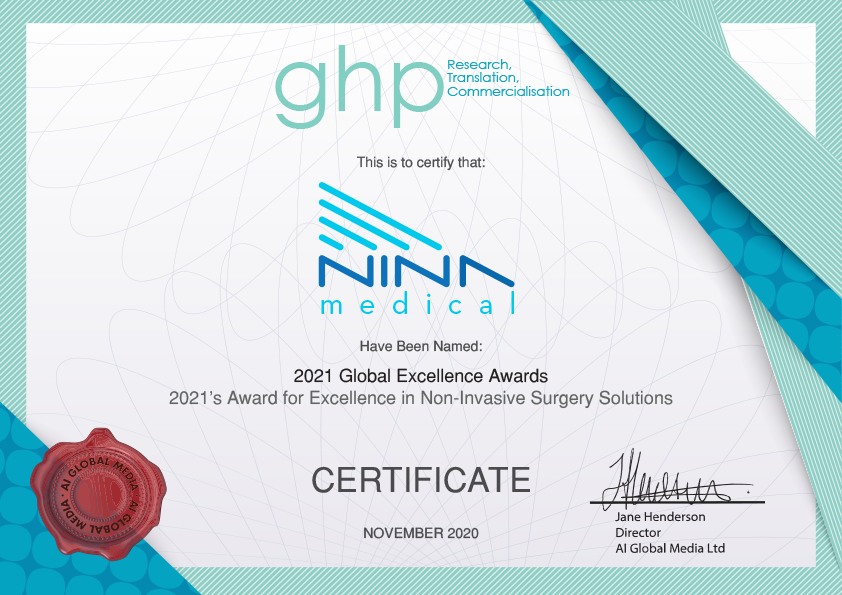 NINA Medical awarded 2021 Global Excellence Awards in Non-Invasive Surgery Solutions by GHP.